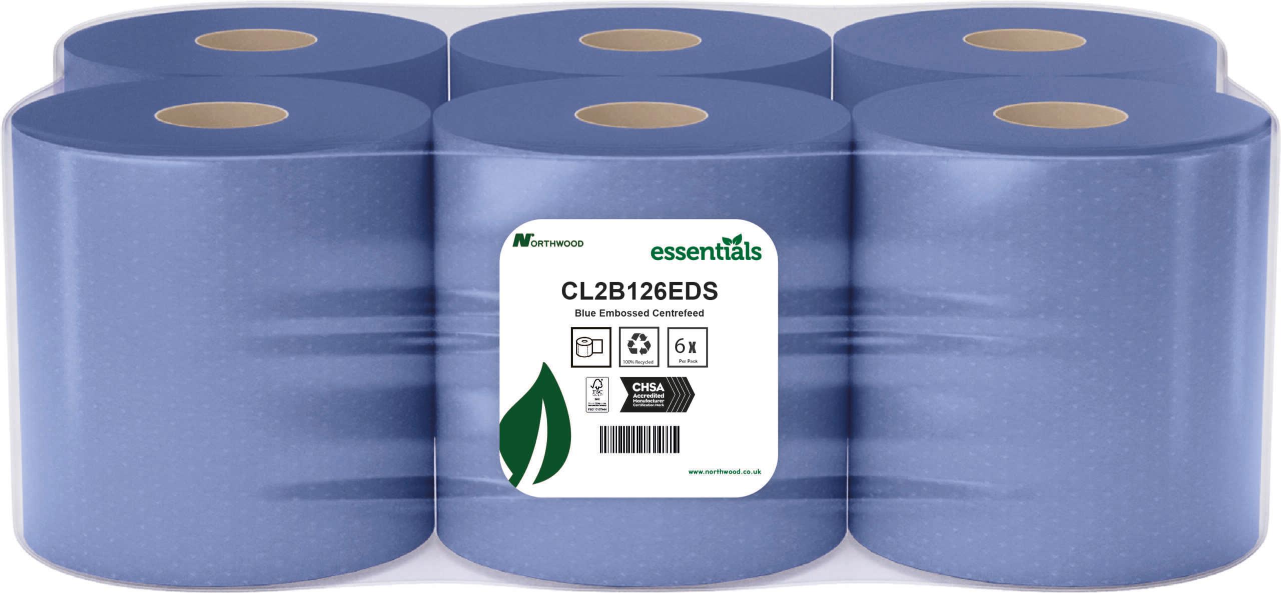 Embossed Centrefeed Roll 2ply Blue 120m